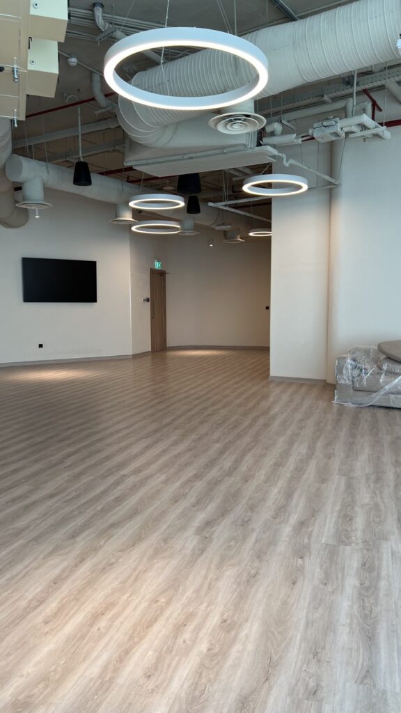 Sleek wooden flooring, premium Bose sound systems, and professional-grade microphones, every detail is tailored for a seamless, high-end experience. Floor-to-ceiling windows flood the room with natural light, creating an inviting and sophisticated atmosphere, while private luxury restrooms ensure comfort and exclusivity for your guests. Fully equipped and tech-ready, this is the perfect setting for corporate gatherings, workshops, and upscale social events in the heart of Riyadh.